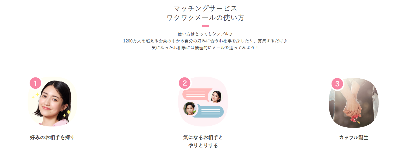ワクワクメールは、2001年から運営されている老舗の出会い系サービスです。20年以上の実績があり、安全性と信頼性の高さで知られています。